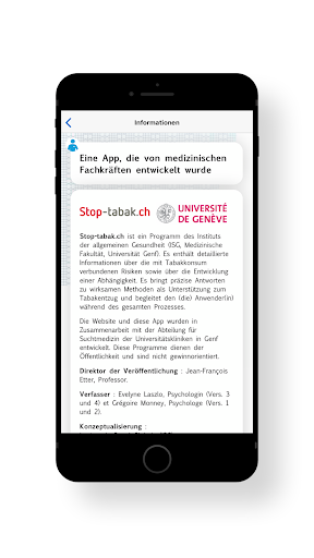 Sie wurde von Tabakexperten für den Rauchstopp der Universität von Genf entwickelt und bietet kostenlos personalisierte Ratschläge an.