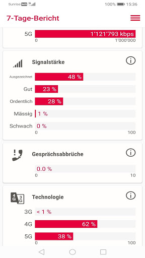 In der App lässt sich andererseits einstellen, dass auch technische Parameter (wie z. B. Funknetzinformationen) regelmäßig und automatisch im Hintergrund erfasst und an Sunrise übermittelt werden können (Datenverbrauch weniger als 2MB/Monat).