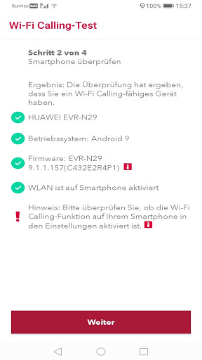 - Das integrierte Wi-Fi Calling Modul überprüft die Voraussetzungen, um Wi-Fi Calling mit Ihrem Smartphone zu benutzen