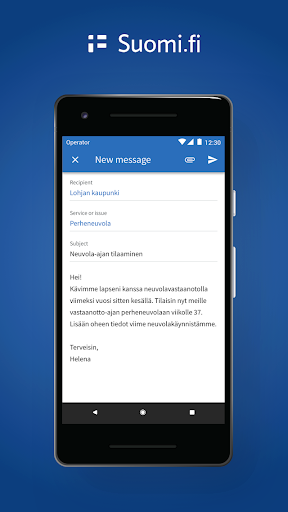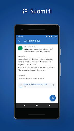 Die App-Anwendung von suomi.fi ermöglicht es den Bürgern, auf Nachrichten, Entscheidungen und andere wichtige Nachrichten zuzugreifen, die von den Behörden elektronisch und direkt an ihre Telefone eingereicht werden. Bürger müssen nicht mehr auf einen Brief warten, um anzukommen, und Dateien in Ordnern. Stattdessen können alle offiziellen E-Mails immer einfach in einem elektronischen Kanal gefunden werden. Die Kommunikation mit den Behörden war noch nie so unkompliziert. Sie können auch die Suomi.fi-App verwenden, um den Behörden zusätzliche Informationen zu übermitteln, beispielsweise in Bezug auf eine Anwendung, die Sie eingereicht haben. Nachrichten zwischen Ihrem Telefon und den Servern werden verschlüsselt - sicherstellen, dass die Verwendung der suomi.fi-App zuverlässig und sicher ist. Der Service wird von der Digital- und Bevölkerungsdaten-Dienstleistungsagentur bereitgestellt.