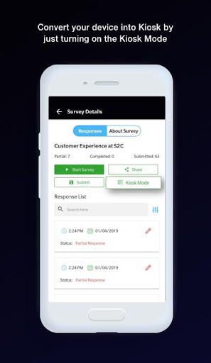 Verwenden Sie den Kiosk -Modus, um Feedback in Ihren Geschäften, Büros und anderen Orten zu sammeln. Sobald Sie die App im Kiosk -Modus platziert haben, startet die App automatisch dieselbe Umfrage, sobald die vorherige Antwort erfasst wurde.