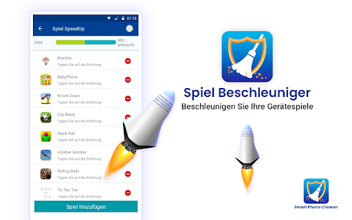 Cleaner For Android bereinigt nicht nur Müll auf Ihrem Gerät, sondern ermöglicht es Ihnen auch, das Beste daraus zu machen. Sie können Ihr Spielerlebnis mit der Game Speed Up-Funktion verbessern. Es gibt RAM frei, um Ihrem Gerät einen deutlichen Geschwindigkeitsschub zu verleihen. Außerdem werden laufende Hintergrundprozesse geschlossen, um die Spieleleistung zu verbessern.