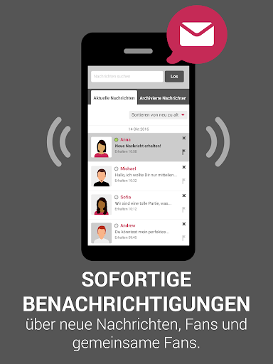 • SOFORTIGE BENACHRICHTIGUNGEN über neue Nachrichten, Fans und gemeinsame Fans.