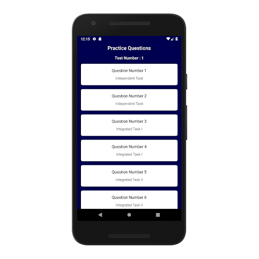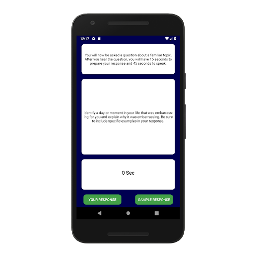 * Familiarize yourself with the test format by simulating the actual TOEFL speaking section through the application. The 10 sample tests for TOEFL speaking section cover all types of independent and integrated questions with a wide range of topics such as history, art, science, and school life.