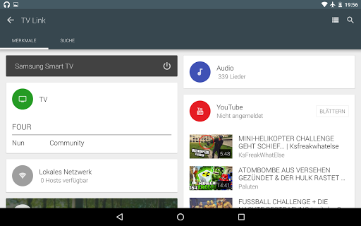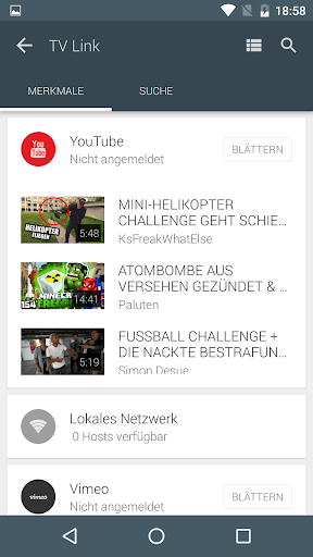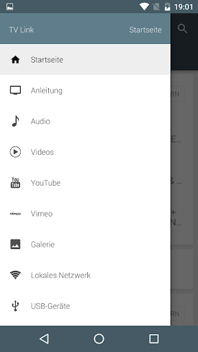 Bitte installieren und starten Sie die TV Link-App auf Ihrem Smart TV / Bluray-Player, bevor Sie ihn mit dem Android-Client verbinden. Sie müssen TV Link auf Ihrem Smart TV / Bluray-Player nicht manuell starten, sobald die Erstinstallation abgeschlossen ist.