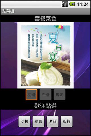This software enables waiterswaitresses taking orders from customers using AN Android cored mobile phone and displays ordered items on completion of ordering.This application is one of the projects of students of Android software development course.all pictures or photos used in this software were downloaded from Internet.We are willing to remove pictures when notified by email wjwan@ms1.hinet.net by pictures owners.