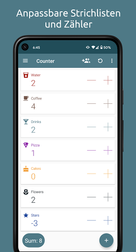 Jede Strichliste kann mehrere individuelle Zähler haben.