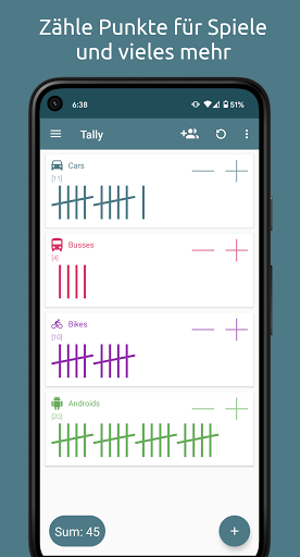 Besser als eine Strichliste auf Papier. Zähle Punkte von Spielen, zähle Besucher und Personen bei deinem Event. Zähle Getränke, Trainingseinheiten und alles was du willst.