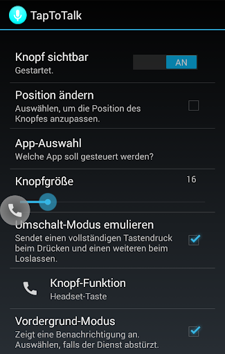 Mit TapToTalk können Sie andere Apps mit einer virtuellen Push-To-Talk-Taste (PTT) kontrollieren. TapToTalk zeigt eine Sprechtaste an, die Sie jederzeit nutzen können, egal welche App Sie gerade benutzen.