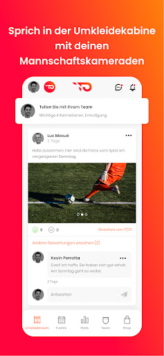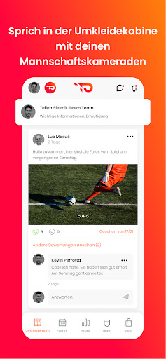 💬 SOCIAL: Profitieren Sie von einem speziellen Bereich für jedes Team, dem Umkleideraum, in dem jedes Mitglied sich äußern, reagieren und Fotos, Videos oder Dokumente mit der gesamten Gruppe teilen kann. Schaffen Sie eine gesellige Atmosphäre und stärken Sie den Teamgeist.