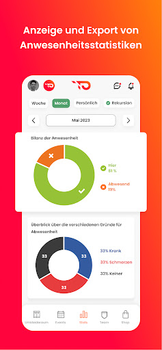 📊 STATISTIKEN: Visualisieren Sie die Anwesenheit der Spieler bei verschiedenen Trainingsarten mit klaren und informativen Diagrammen. Verfolgen Sie den Fortschritt Ihres Teams und treffen Sie fundierte Entscheidungen, um Ihre Leistung zu verbessern.