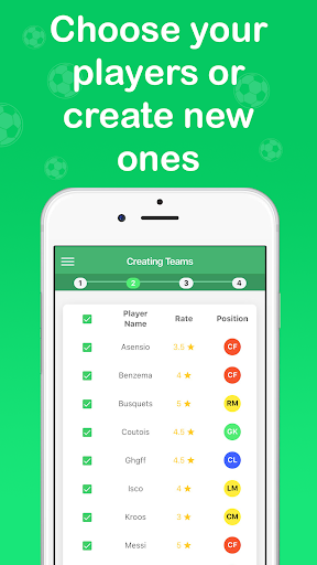 • Rate players from 5 to 1 stars to get the best random and equal teams