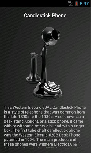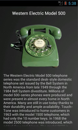 Die neueste Ausgabe dieser App enthält vier Telefone (Kerzenständer, EricoFon, Modell 500, Prinzessin) mit vier Tönen für jedes Telefon (Standard, Volumenerhöhung, 1x Ring und 2x Ringe). Neben den Tönen haben wir auch einige Fotos und Informationen auf jedem Telefon bereitgestellt.
