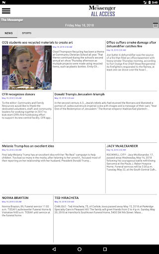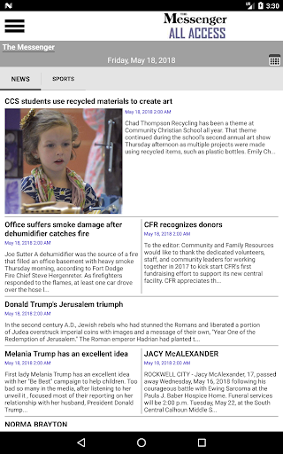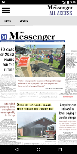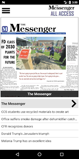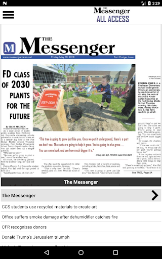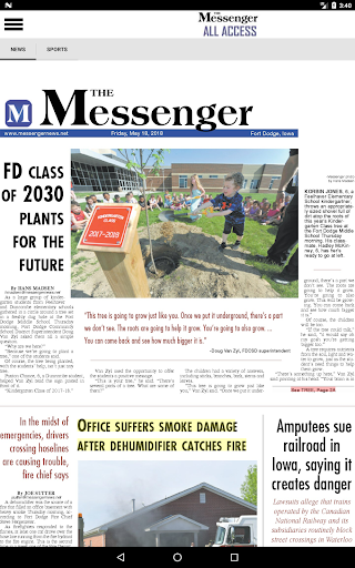 Bleiben Sie von Fort Dodge und Umgebung, indem Sie die vollständige Druckversion des Messengers auf Ihrem Android-Gerät erhalten. Jede Seite jeder Ausgabe wird an Ihr Gerät geliefert. Der Messenger ist die beste Quelle für lokale und nationale Nachrichten, Sport, Wetter, Wetter und Funktionen in Fort Dodge und North-Central Iowa. Laden Sie die App herunter, um die gedruckten Seiten der Zeitung anzuzeigen oder zusammen mit verwandten Fotos in einem integrierten Story-Viewer zu sehen.