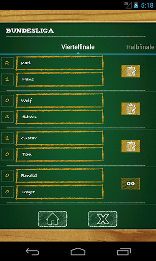 Müde von schreiben Sie Ihre Spiele mit Freunden auf Pizza-Box? König des Hügels, Liga und Qualifikationsturnier: Die Turniere Manager kann jede Art von Turnier zu verwalten. Speichern Sie die historischen Ergebnisse und Statistiken Ihrer Spiele. Beitrag auf facebook die Turniersieger. Bis zu 32 Spieler pro Turnier. Ideal für Turniere der FIFA und PES. Genießen Sie es! Es ist kostenlos! Die beste Turnier Maker.
