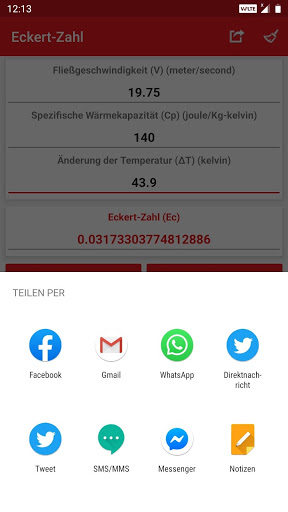 • Berechnete Werte und Ergebnisse können für soziale Medien, E-Mails, Nachrichten und andere freigegebene Apps freigegeben werden.