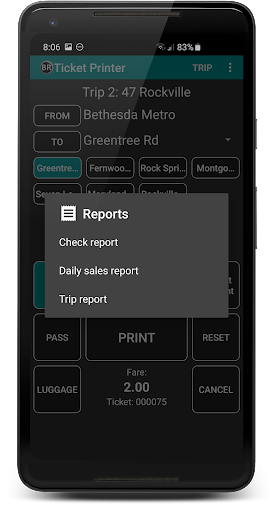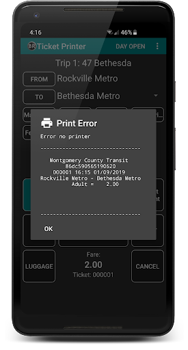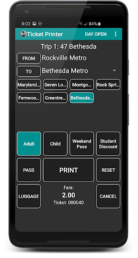 ist eine mobile Ticketing-Maschinen-App, die Fahrer oder Leiter, um Tickets auf einem Bus zu drucken.