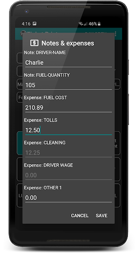 • Benutzerkonfigurierbare Ausgaben - Mautgebühren, Fahrerlohn, Treibstoff usw.