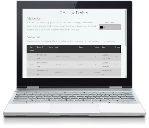 Jedes Android-Telefon mit einem Bluetooth-Drucker kann zu einem voll ausgestatteten Busticket-Gerät werden . Eine Busflotte mit der App an Bord kann auf unserer