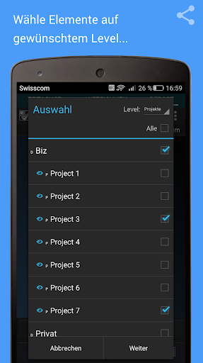 👍 Organisiere deine Zeiteinträge auf Level Domäne, Projekt und individuellen Tasks.