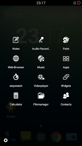 Notizblock, Audiorekorder, Malblock, Internetbrowser, Musikplayer, Applauncher, Stopuhr, Videoplayer, Widgets, Rechner, Dateimanager, Kontakte, Galerie, Systeminfo, Kamera, Übersetzer, Netzwerk-Monitor, Kalender.