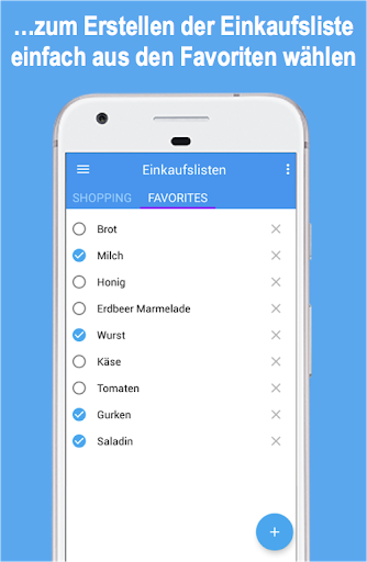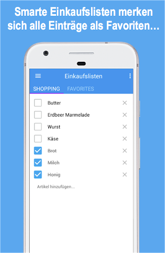 - Jeder Einkaufs-Artikel wird automatisch als Favorit gespeichert
