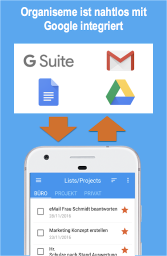 Organiseme ist eine To-Do bzw. Aufgaben-Listen Anwendung, die Sie unterstützt, Ihre Dinge zu erledigen - im Privaten wie im Berufsleben. Zusätzlich verfügt die App über eine intelligente Einkaufslisten-Funktion die sich Ihre Einkäufe als Favoriten merkt. Damit können Sie Ihre Einkaufslisten durch Auswahl aus den Favoriten schnell erstellen. Das Google-ähnliches Design und die nahtlose Integration mit Google macht die App