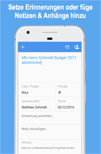 - Setzen Sie Erinnerungen und wiederkehrende Aufgaben, fügen Sie Notizen und Anhänge hinzu - und werden Sie super-produktiv.