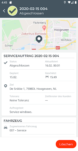 Aufträge: Versenden Sie neue Aufträge und sehen Sie sich den Status eines bestehenden Auftrags für ein ausgewähltes Fahrzeug an. Einschließlich des Standorts des Fahrzeugs, das den Auftrag bearbeitet, und der voraussichtlichen Ankunftszeit.