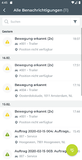 Fahrdaten: Erhalten Sie Zugriff auf zuvor aufgezeichnete Fahrtdaten, sortiert nach Datum. Für ein einzelnes Fahrzeug oder die gesamte Flotte.