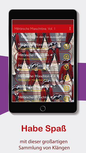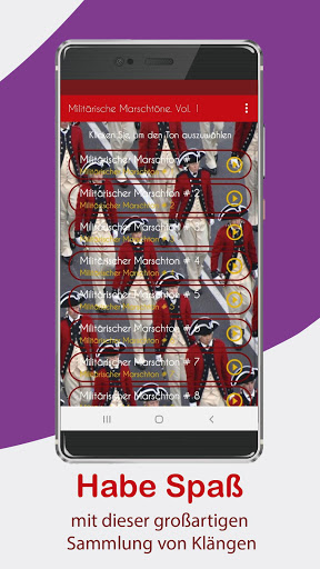 Es ist bereits im Play Store verfügbar, um unsere neuen Anwendungstöne von Militärmärschen für Mobiltelefone kostenlos herunterzuladen, unsere neue App mit Militärmarschgeräuschen für Mobiltelefone zu genießen (verwenden Sie sie als Klingeltöne, SMS-Töne, Alarm oder Benachrichtigung) und freuen Sie sich den Tag mit diesen schönen Farben. Laden Sie es jetzt herunter und genießen Sie alle Inhalte.