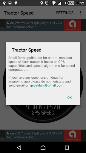 Small farm application for control constant speed of farm tractor. It bases on GPS capabilities and special algorithms for speed computation.
