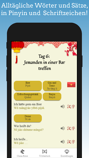 Es bietet einen auf Reisen basierenden Ansatz, der von chinesischen Muttersprachlern entwickelt wurde, um Sie bei der Navigation durch das Land zu unterstützen, die Sehenswürdigkeiten zu entdecken, Speisen zu probieren und Leute zu treffen. Sie lernen die Grundlagen des Mandarin-Chinesischen und können es jederzeit und überall sprechen!