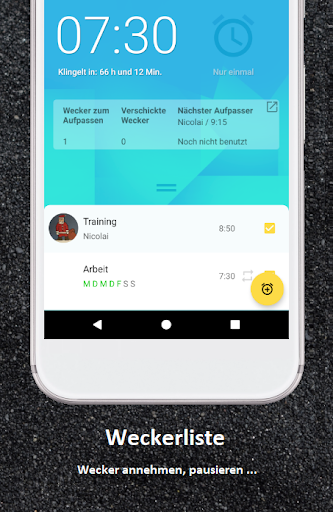 Nachdem du alle Empfänger/-innen ausgewählt hast und den Wecker speicherst, kriegen alle Empfänger/-innen eine Push-Benachrichtigung und können den Wecker, in ihrer ganz normalen Liste an Weckern, annehmen oder ablehnen. Wenn du den Wecker updatest, muss er erneut bestätigt werden.