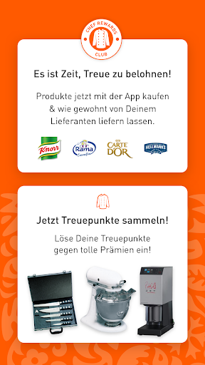 Mit der neuen App kannst Du alle Produkte von Unilever Food Solutions (wie beispielsweise Produkte der Marken Knorr, Hellmann's, Carte d’Or, Rama Cremefine) kaufen. Deine Treue wird jetzt bei jeder Bestellung belohnt.