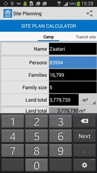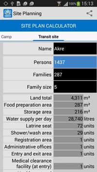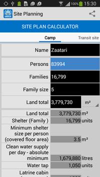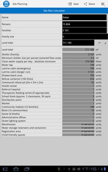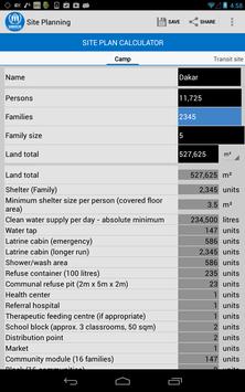 Site planning calculator: Calculates site needs depending of the number of refugees or refugee families.