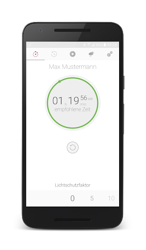 • Nach Eingabe Ihres Hauttyps, des angewendeten Lichtschutzfaktors (LSF), berechnet UVlower für Ihren Aufenthaltsort die optimale Sonnenbad Dauer.