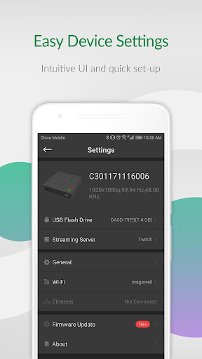 · Preview device input signal, record video as MP4 files to mobile phone for social media sharing.