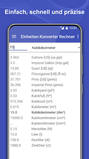 für alle Umwandlungen, die Sie brauchen. Diese Anwendung für den täglichen Gebrauch und schnelle Umwandlungen von Einheiten ist ein Muss. Unsere App für die Umwandlung von Einheiten ist mit nur 2,7 MB eine der kleinsten Produktivitäts-Apps auf dem Markt. Das moderne Design der Nutzeroberfläche sowie jede Menge Einheiten und seine Einfachheit haben dieses Werkzeug zu einer der höchstbewerteten Umwandlungs-Apps im Google Play Store gemacht.