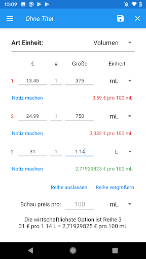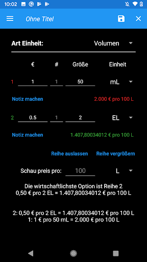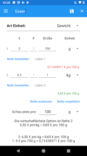Im Lebensmittelladen? Müssen Sie den Shop zwischen Artikeln unterschiedlicher Größe vergleichen? Diese App wird die Mathematik für Sie erledigen, um herauszufinden, welches das beste Angebot ist!