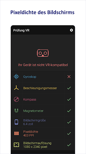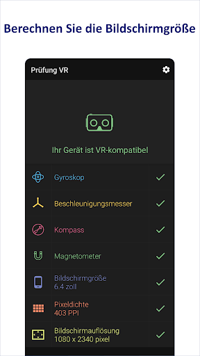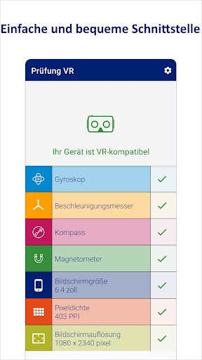 Prüfung VR ist eine kostenlos und einfache app auf Deutsch, die kompatibilität ihres geräts mit der virtual reality technologie überprüft.