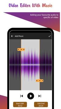 ➺ Change background music of a video by adding your favorite audio to specific portion of video by trim option or you can also change the audio of whole video.
