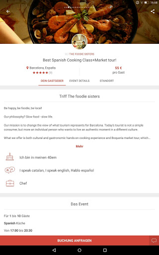 Eatwith ist die beliebteste App unter Gourmet Reisenden. Von Abendessen bis Esstouren über Kochkurse, treten Sie unserer Hand ausgewählte Auswahl an Einheimischen in über 130 Ländern bei. Sie werden ein unvergessliches Erlebnis erleben.