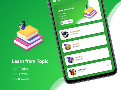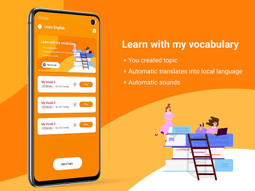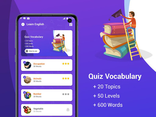 , learners can learn English vocabulary through delightful pictures and amazing videos. Moreover, you can add vocabulary that you want and create your own topics so as to self-study and play vocabulary quizzes. Vocabulary’s pronunciation is completely based on Oxford standard so your pronunciation skills will be improved.