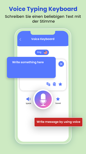 Lassen Sie uns Text mit der Voice Keyboard-App einfach und schnell eingeben. Jetzt müssen Sie keine Textnachrichten und Sprachnachrichten mehr von Hand eingeben. Sprechen Sie einfach und geben Sie Text mit der Voice Typing-Tastatur ein. Die Tastaturanwendung für die englische Eingabe wandelt Ihre Stimme in Text um, sodass Sie schneller sprechen als tippen können. Manchmal haben wir keine Zeit, Text einzugeben. Öffnen Sie einfach die Voice Typing-Tastatur: Speech to Text Converter und sprechen Sie Ihre Sprachnachricht und geben Sie Text über Sprache ein. Die kostenlose Gesprächs- und Text-App konvertiert nach dem Sprechen von Stimme zu Texttastatur automatisch handgeschriebene Nachrichten und Ihre Stimme in den Text. Mit der Anwendung "Mit Text sprechen" können Sie Textnachrichten, Sprachnotizen und Langtexte, Geschichten und Artikel diktieren. Die Sprachanwendungstextanwendung ist eine schnelle und einfache Sprachanwendungstastaturanwendung, die Ihre Sprachnachricht in Text umwandelt und Textnachrichten eingibt. Mit der Voice-to-Text-Eingabe-App können Sie Ihre mobile Eingabe und Textnachricht einfach und schnell durch Sprachnotizen erstellen.