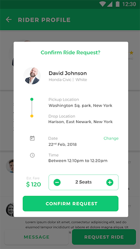 Carpooling-App oder Car-Sharing-App.Vroom ist eine Ride-Sharing-Anwendung, die dem BLABLA-Auto ähnelt.Mit dieser Anwendung kann der Fahrer eine Fahrt teilen oder ein Auto teilen.Dieses Projekt enthält zwei Vorlagen, eine für den Treiber, um eine Fahrt- und Freigabe-Fahrt zu erstellen, und eine für einen Benutzer, um nach einem gemeinsam genutzten Auto oder mithilfe von Teilen zu suchen.Dieses Projekt verfügt über zwei Vorlagen, eines für die Ride-Sharing Android- und iOS-App-Vorlage und eine für einen Benutzer zur Suche von Car Android- und iOS-App-Vorlagen.Seine mobilen Apps verbinden Fahrer und Passagiere, die bereit sind, auf derselben Route zusammen zu reisen und die Kosten der Reise zu teilen.