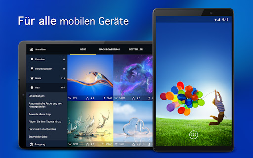 Nachdem Sie ein Bild gewählt haben, können Sie es herunterladen, zu Favoriten hinzufügen oder sofort als Hintergrundbild auf Ihr Handtelefon oder Tablet installieren. Alle Bilder können auf den Sperrbildschirm installiert werden.