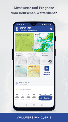 Folgende Funktionen bietet die WarnWetter-App (entgeltfreie Version):