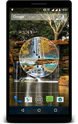 This is gorgeous live wallpaper with Waterfall theme style analog clock