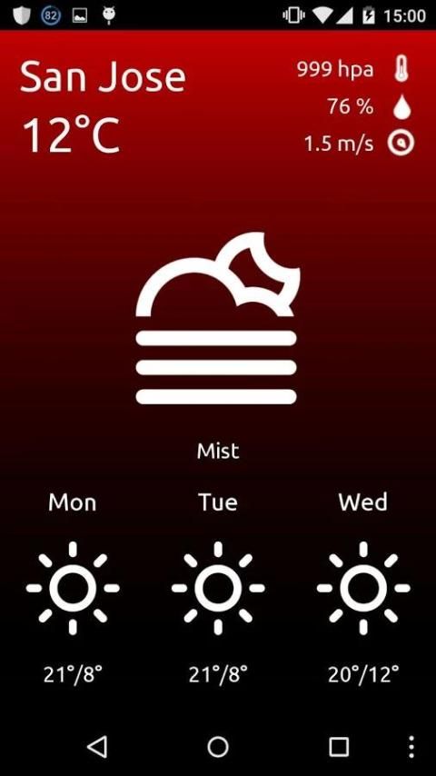Weather Live for Android is a app that shows the weather forecast for today and the next three days